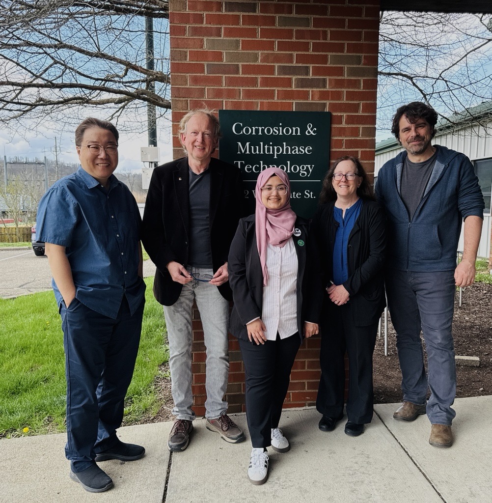 Negar Moradighadi, Huiru Wang, Luntao Wang, and Srdjan Nesic from the Institute for Corrosion and Multiphase Technology with Antoine Seyeux,