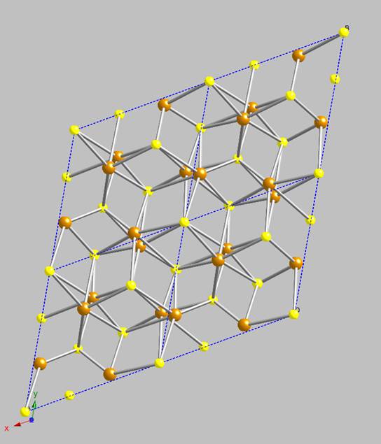 arrangement of iron and sulfur atoms in the troilite lattice, viewed perpendicular to the xy-plane, is shown in